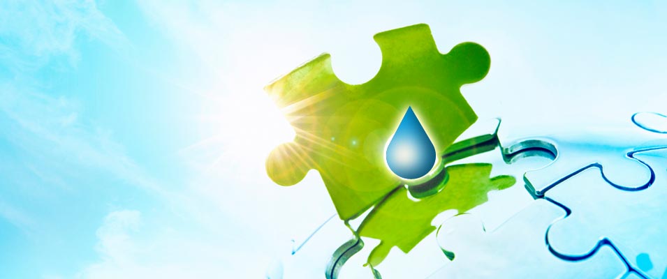 Pflanze mit Tropfen: ©iStockphoto.com/Nik_Merkulov, Reagenzgläser Pflanzen: ©iStockphoto.com/SerrNovik, Grünes Labor: ©iStockphoto.com/Spotmatik, Landschaft mit Baum: ©iStockphoto.com/konradlew, Grünes Puzzleteil: ©iStockphoto.com/gmutlu